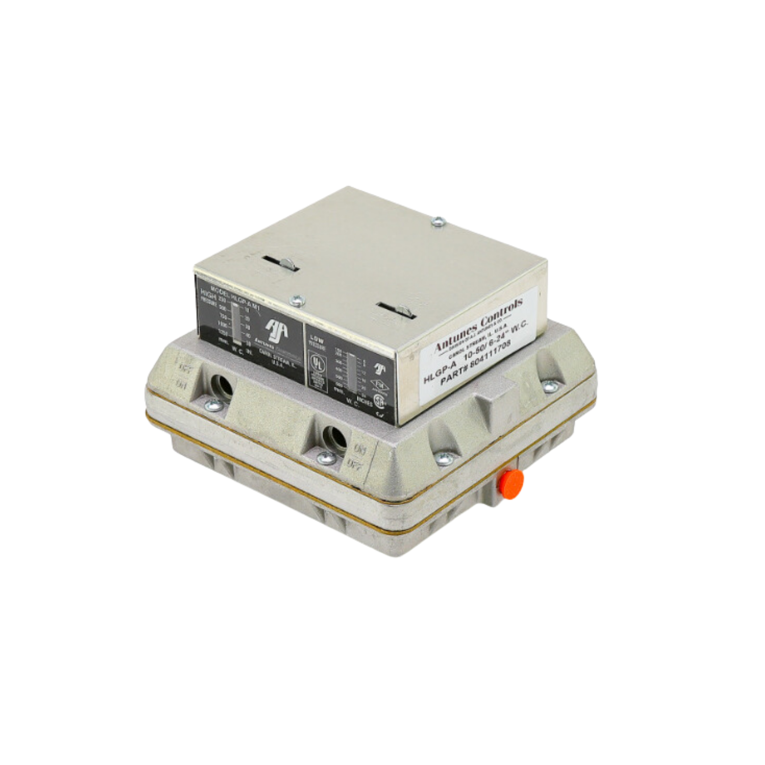 A.J. Antunes 804111708 1/8" NPT, 3/8" NPT, 1/8" NPT Vent, Manual-Reset, 2-SPDT, High and Low Gas Pressure Switch